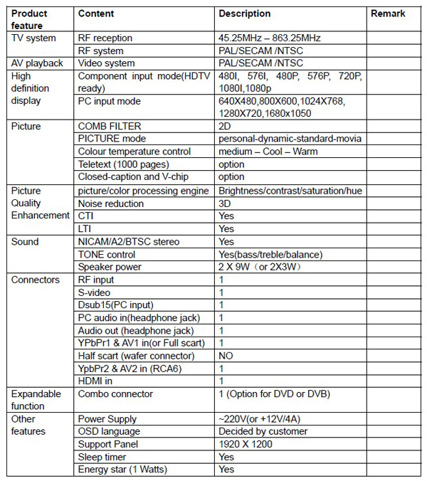 MCU,NICAM/BTSC,HDMI,AUDIO Processor等,支持屏的分